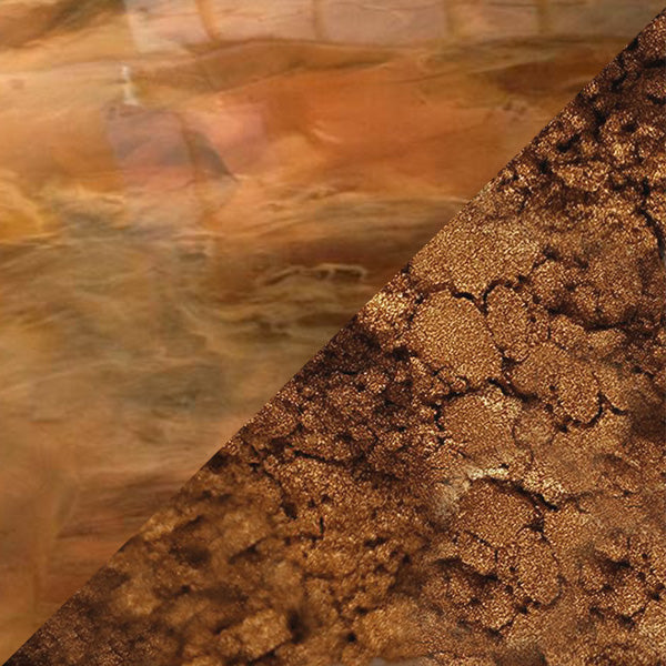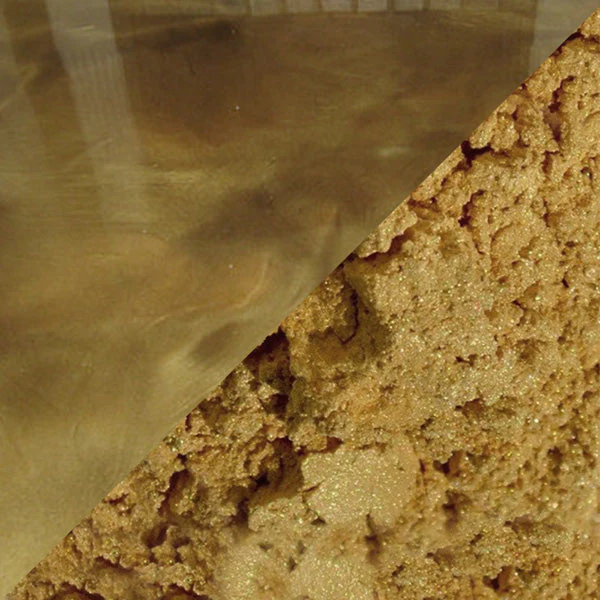 Metallic Powder Reflections Pigments composed of mica nano- particles coated with various organic and inorganic pigments to create pearlescent and iridescent effects that mimic the natural look of stone and rock formations.