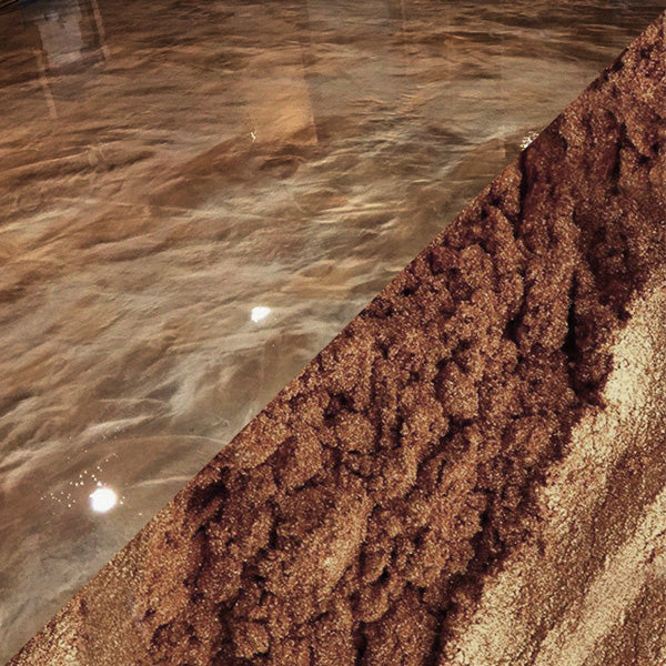 These unique pigments are designed to be field blended with a 100% solids clear epoxy binder. When the metallic particles are mixed with epoxy they give the coating a shine that reflects light and creates and eye catching dramatic color.